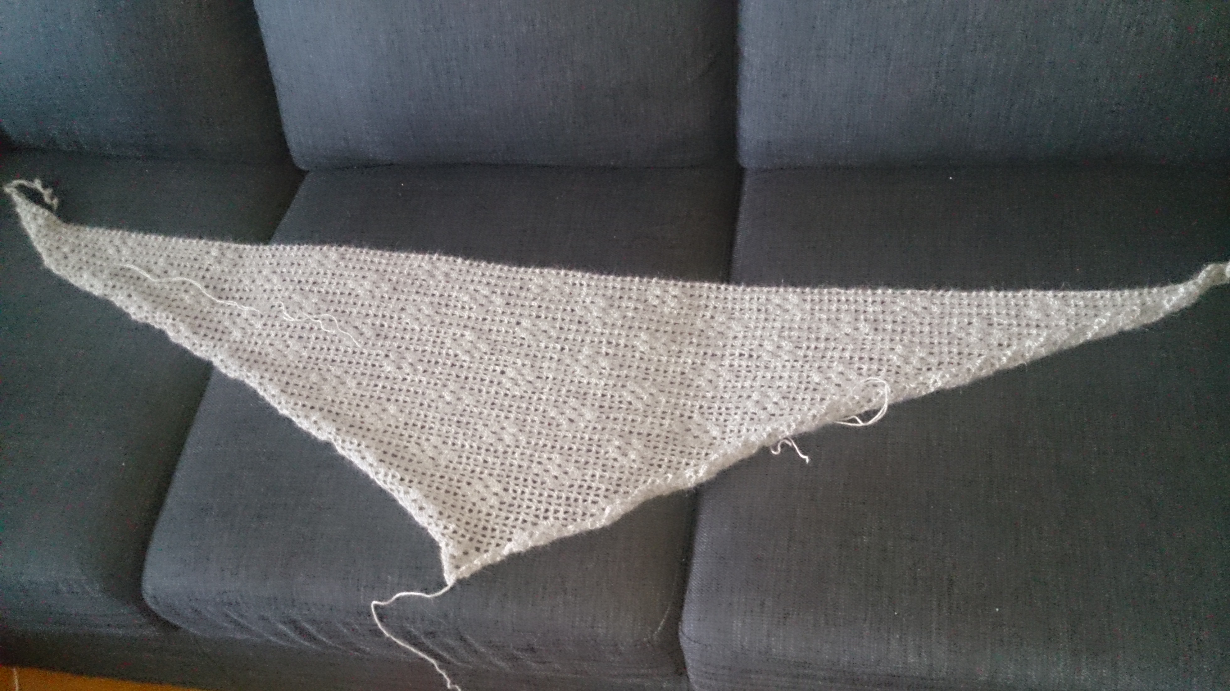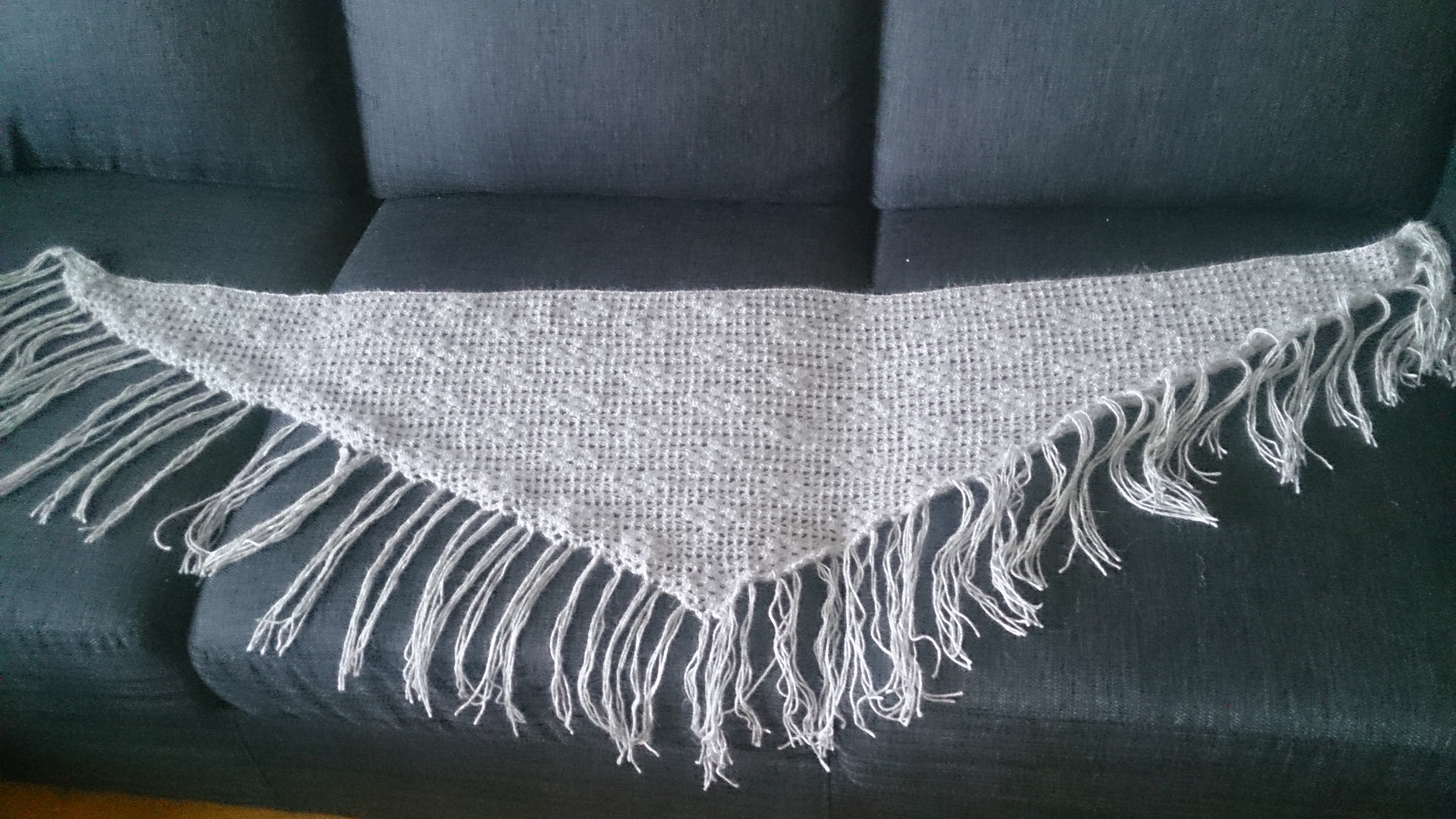 Slik ser sjalet ut før jeg festet tråder og festet på frynser.