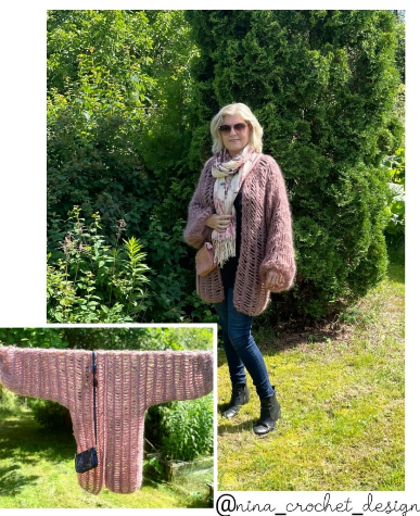 I love to use cardigan. This time the design is different. Cardigan can be worn both indoors and outdoors. A cardigan fits most things.The jacket is crocheted in Line Langmo påfugl fra Dale garn. I crocheted in hook size ,0. It is in one size, 38.. The jacket itself is 78 cm long and 106 wide. Here is a picture of the finished jacket.