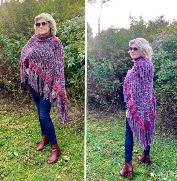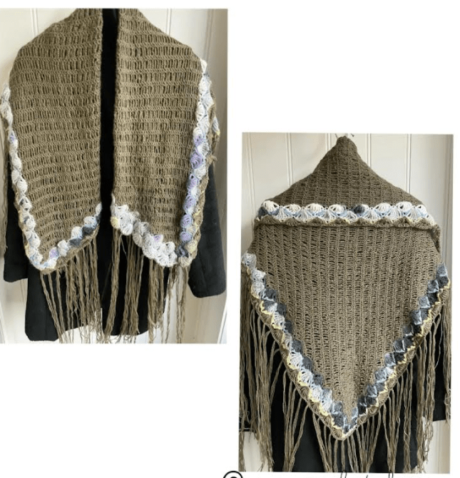 Ja jeg bare elsker sjal. Denne gangen handler det om å utforske det å bruke to mønster med to helt ulike garn, Jeg har først heklet en versjon i Multicolored Acrylic fra Pandoro og Smart superwash fra Sandnes garn. Den andre versjonen er heklet i garn fra Su store alpakka, tynn Alpakke og et fra Gomitolo molto. Sjalet er heklet fra bunnen av . Her er bilder av sjalene: